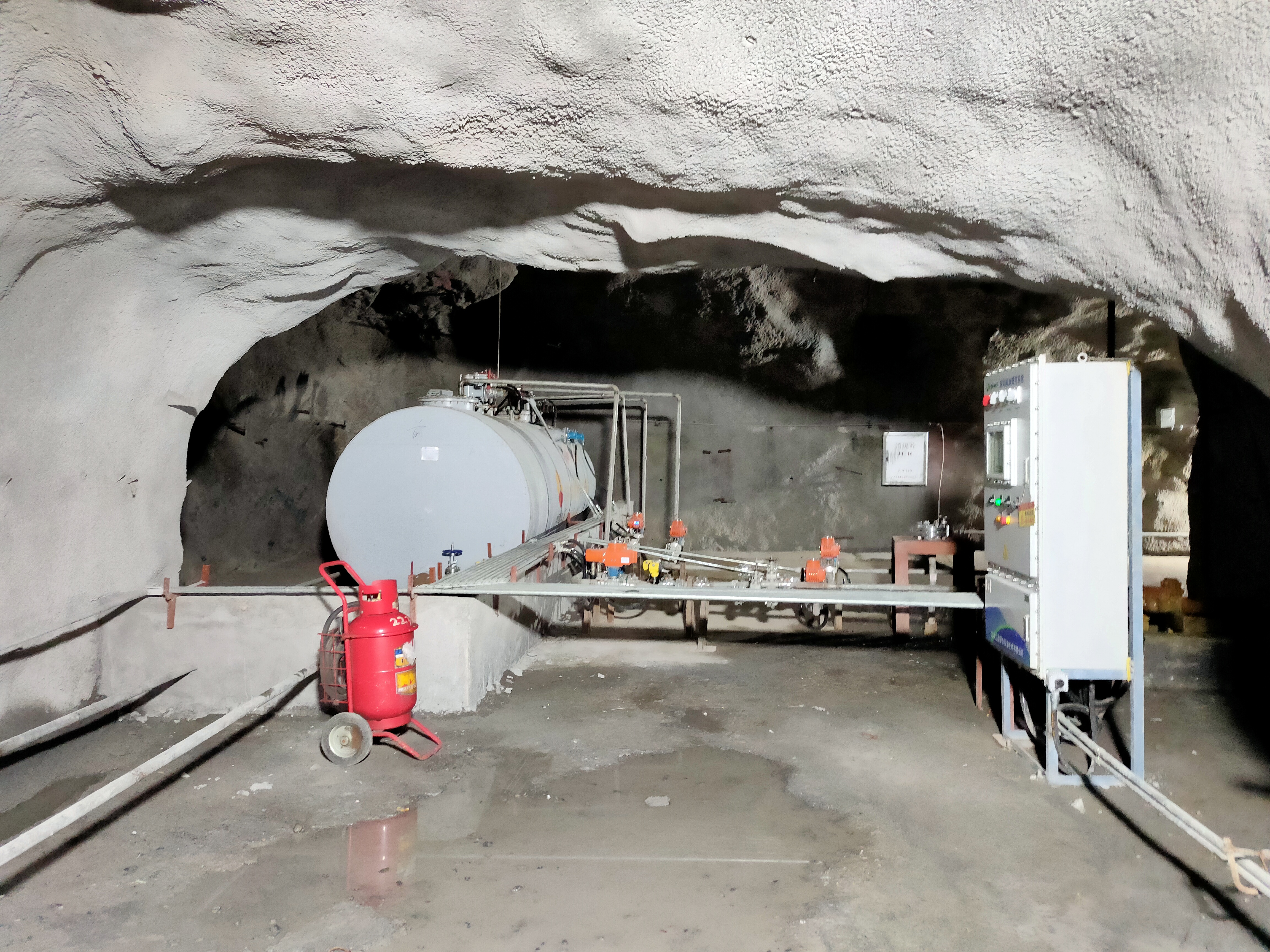 凡口鉛鋅礦井下680米智能供油系統(tǒng) 目前正有序施工中, 預(yù)計(jì)9月底完工并投入使用。該項(xiàng)目為全國首創(chuàng), 由韶關(guān)企業(yè)進(jìn)行技術(shù)攻堅(jiān) 并申請(qǐng)多項(xiàng)國家專利, 擬申報(bào)吉尼斯世界紀(jì)錄 “全球最深的智能供油系統(tǒng)”。 凡口鉛鋅礦井下智能供油系統(tǒng) 需在地面設(shè)置橇裝加油裝置, 并分別在地下 330米、480米和680米處 建設(shè)智能化供油系統(tǒng), 通過鉆孔鋪設(shè)輸油管線, 將油品從地面輸送到井下。 地下330米智能加油點(diǎn), 目前已進(jìn)入收尾階段, 現(xiàn)場(chǎng)有兩根 從地面裝置接下來的輸油管, 用于工程車加油, 另一邊也有兩根輸油管輸送到 地下480米和680米的智能加油點(diǎn)。 別看油管很細(xì),鉆孔不大, 但施工難度并不小, 全長3千多米的輸油管, 垂直打孔偏差不能超過1米。 作為亞洲最大的 單體鉛鋅銀礦生產(chǎn)基地, 凡口鉛鋅礦 有井下工程車輛和設(shè)備100多臺(tái), 井下用油量大。 井下智能化供油系統(tǒng)啟用后, 不僅解決井下用油安全、環(huán)保風(fēng)險(xiǎn), 同時(shí)降低生產(chǎn)用油成本, 推進(jìn)凡口鉛鋅礦建設(shè)智能化礦山, 實(shí)現(xiàn)“無人開采”。 如果鉆孔偏差太大,就找不到鉆下來的孔,影響輸油管道的布設(shè),增大成本。3千多米有5千多個(gè)焊接點(diǎn),所有的焊接口都要達(dá)到高壓管道的焊接要求,這個(gè)項(xiàng)目是全國首創(chuàng),在全國所有礦山企業(yè)中,我們是首次使用通過輸油管道往井下輸油,并且實(shí)現(xiàn)智能控制的方案。 這個(gè)月底把地下330米加油點(diǎn)完工,開始加油,9月底把底下480米和680米開通使用。希望通過這個(gè)項(xiàng)目打造創(chuàng)新科技的韶關(guān)樣板,把先進(jìn)的經(jīng)驗(yàn)和技術(shù)推廣到全省、全國乃至全球。
